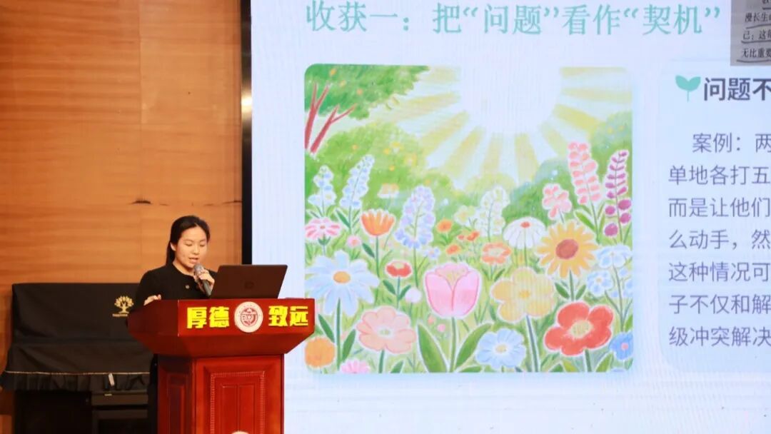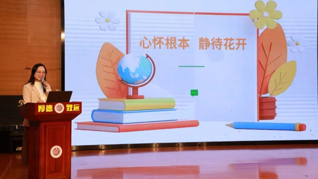 陈慧珊副校长以《教育的根本》为引,为我们带来深刻的教育思考。她指出教育的根本是心灵的安顿,要以善良与德行为基石,给孩子安全的探索空间;核心是构建平等的生命关系,以真诚与耐心实现师生双向奔赴;延伸则是家校协同,凝聚育人合力。同时,教育者更要躬身修炼,保持教育的温度与纯度,在浮躁中沉淀静气、扎根学习。教育本是慢的艺术,道阻且长,行则将至,唯有心怀教育初心,坚守育人根本,以爱浇灌、以静待之,方能唤醒孩子内心的美好,成全每一个独一无二的生命绽放。