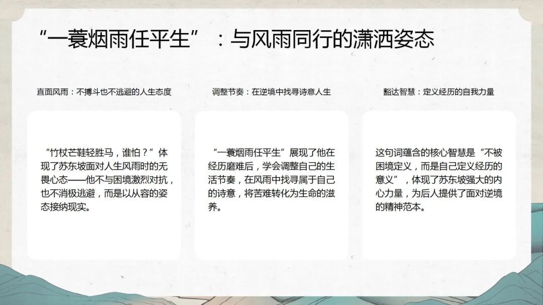 郑嘉瑜老师分享《苏东坡——人生有解》,从东坡的一生提炼出治愈的人生解题智慧。她感慨东坡一生颠沛却始终坚守本心,于乌台诗案的绝境中涅槃,以“一蓑烟雨任平生”的豁达接纳风雨,在贬谪的苦难里寻得生活诗意。人生本无标准答案,与其纠结困境,不如学东坡与生活和解,调整心态、戒掉内耗,以从容姿态活在当下,把眼前的日子过得畅快淋漓,做自己的人生解题者。