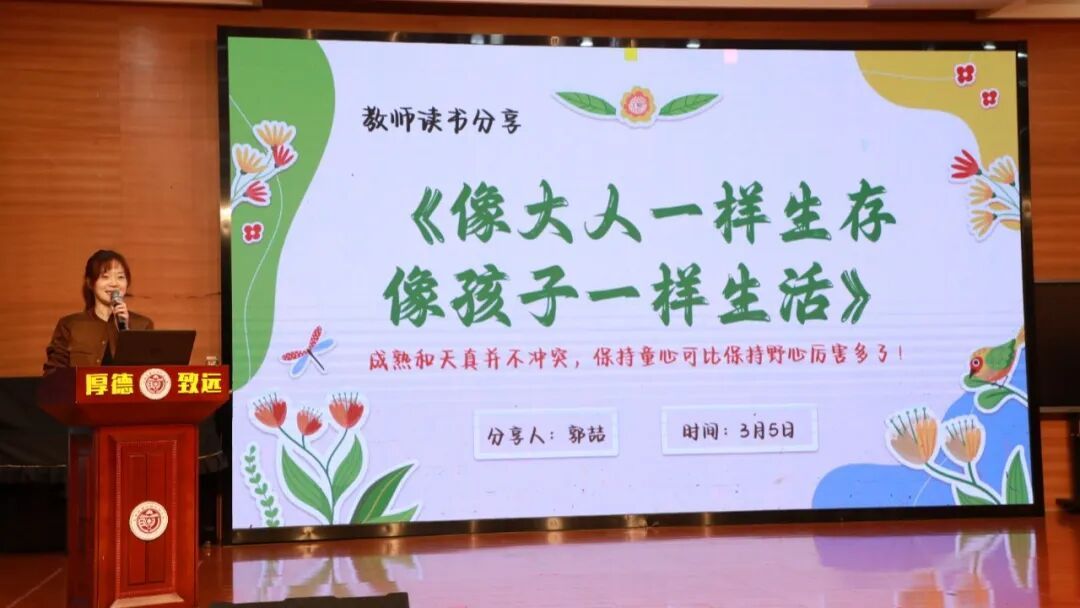 郭喆老师分享的是《像大人一样生存 像孩子一样生活》。她感慨在快节奏的当下,我们总被大人的责任裹挟,却忘了守护内心的童真。郭老师从书中悟得,成熟与天真从非对立,我们既要像大人般扛起责任、情绪稳定,做人生的主角;也要像孩子般保持好奇、尽情快乐,心怀诗意,在生活里尽兴体验,不慌不忙,不负时光。