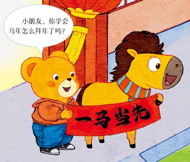 跟着嘟嘟熊学一句:“祝您福气‘万马奔腾’,好运‘一马当先’!”