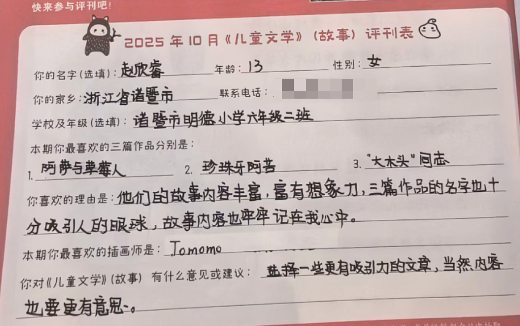 快来参与《儿童文学》杂志11期评刊活动吧!