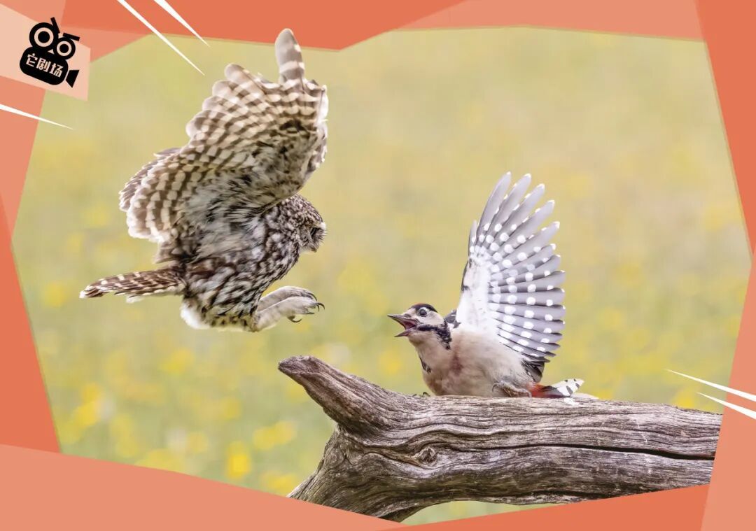 主角是纵纹腹小鸮和大斑啄木鸟。