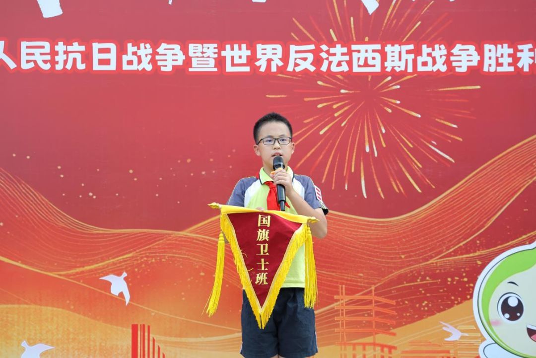 各中队方阵迈着铿锵步伐走来,“铭记历史、强国有我”的嘹亮口号尽显少年志气。杭州市军休干部邵钧同志结合自身22载国防装备工作经历,用“坚持”“担当”“传承”三个关键词,为全校师生上了一堂“有温度”的红色思政课。