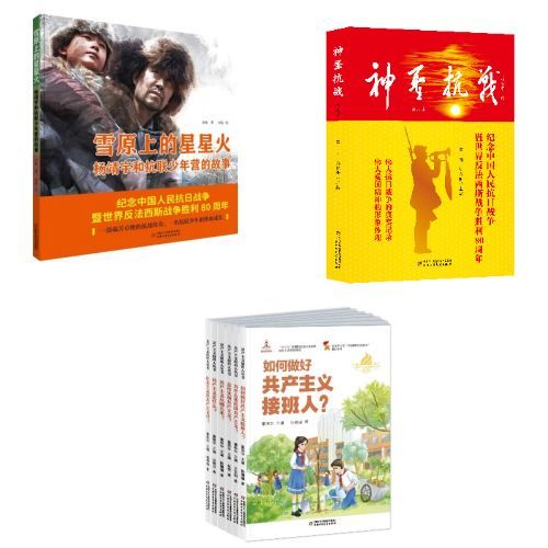 中少总社出版的图书《雪原上的星星火·杨靖宇和抗联少年营的故事》《神圣抗战》《共产主义接班人丛书》