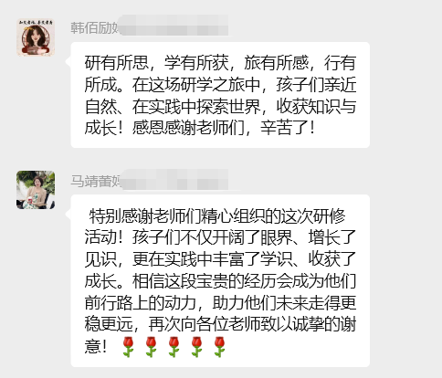 家长群里,感谢的消息每天都在刷屏。阿卜杜拉妈妈说:“孩子每天跟我分享,说老师比我们还细心,连他不爱吃葱都记得,太感动了!” 魏爸爸留言:“孩子说研学比过年还开心,不仅长了见识,还学会了跟同学协作,谢谢老师们的用心!”然娜妈妈更是感慨:“这趟经历会成为孩子的宝藏,谢谢你们把孩子照顾得这么好。”