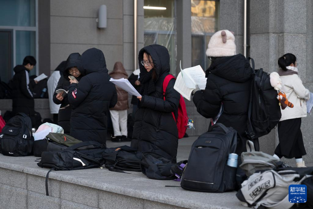 12月20日,考生在哈尔滨理工大学考点外复习。