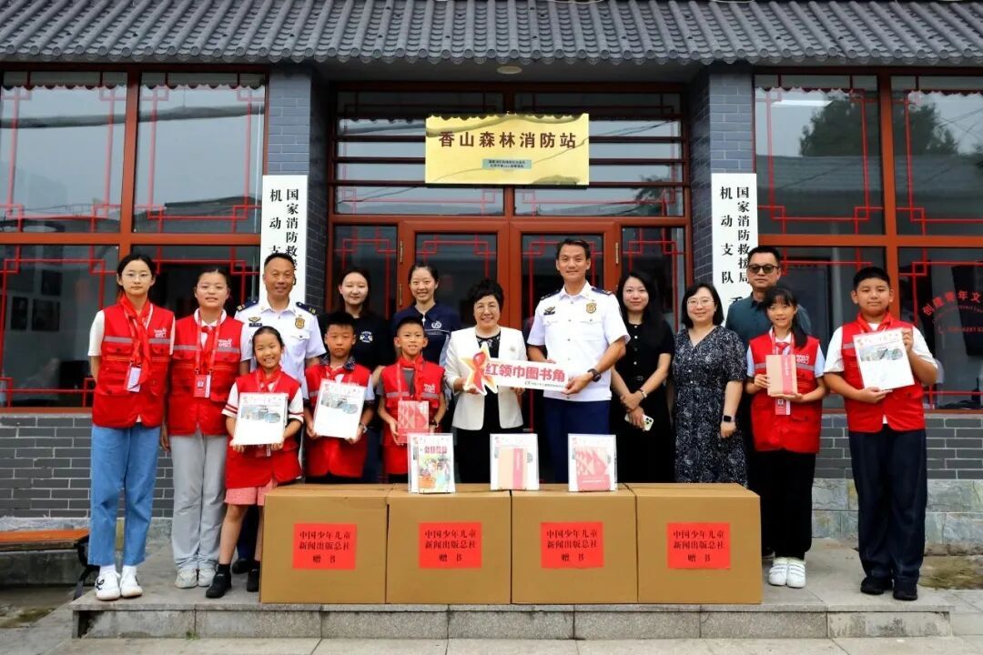 随后,与会人员前往香山脚下的香山森林消防站参加“红领巾图书角”捐赠仪式,并现场体验消防知识实际操作。中少总社为香山森林消防站捐赠800余册书报刊,涵盖理想信念、红色经典、科学普及、安全教育等类别,不仅大大丰富了香山森林消防站的公共阅读空间,也为前来香山游览的大朋友小朋友带来更多书香。