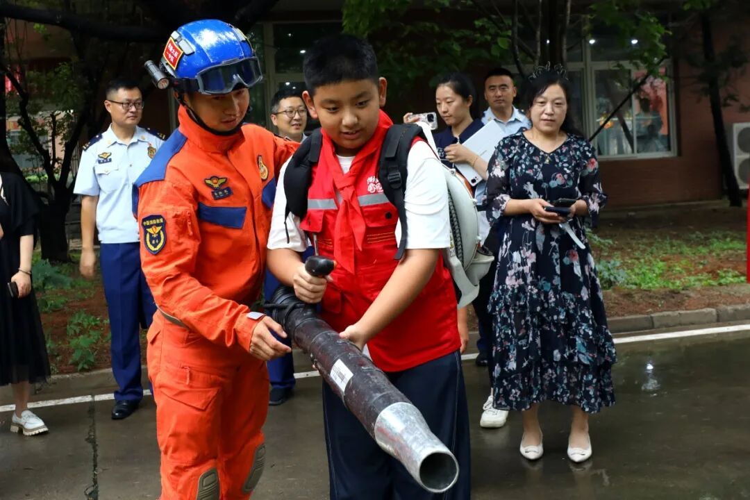 机动支队指战员子女韩思童、靳新灏作为小记者代表发言:“我们要用笔记录下父辈逆行的身影,让更多人了解火焰蓝的故事。”支队特约辅导员代表、训练大队干部赵玉以“三颗火种”寄语小记者:“保持好奇如侦查火场,坚持求真似排查隐患,写作勇敢若救援冲锋。”