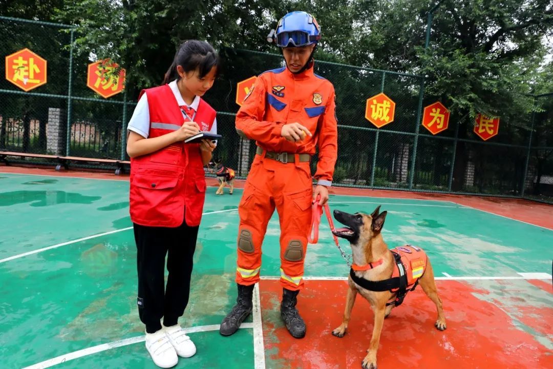 活动在沉浸式消防研学中拉开帷幕。在《中国少年报》两位资深记者指导下,小记者们体验了液压破拆工具组操作、观摩了搜救犬随行、远距离指挥等服从科目演练。“采访时要抓住5W1H要素,同时要仔细观察消防员叔叔们的眼神和动作。”《中国少年报》记者在现场传授新闻采访技巧时说道。张登雅小记者在采访本上认真写下:“搜救犬圆圆、小七完成指令仅用3秒,它和训导员的默契配合,让我想起爸爸时常对我提起的在救援现场,专业和速度同样重要。”