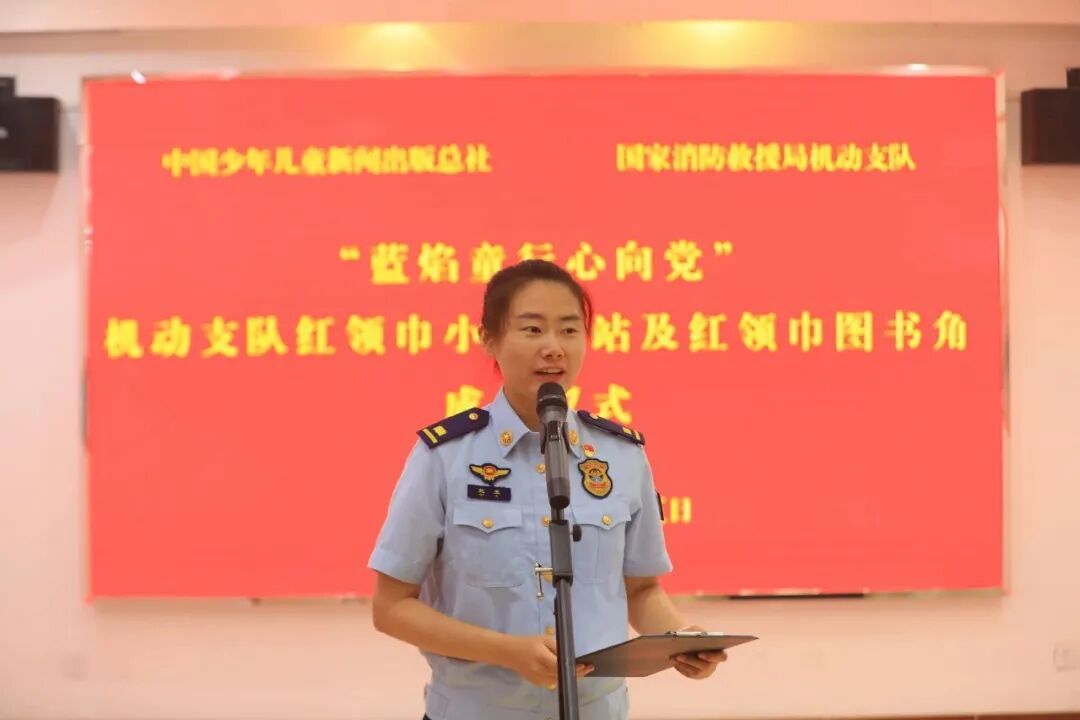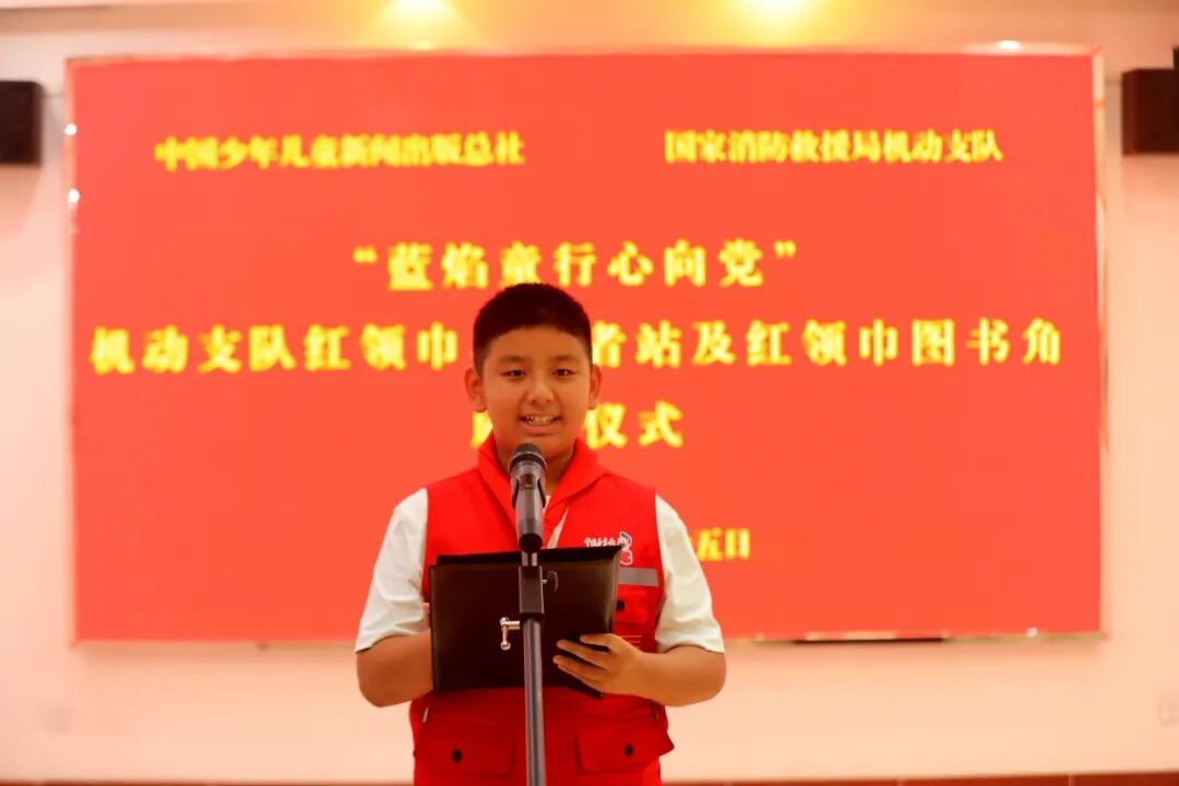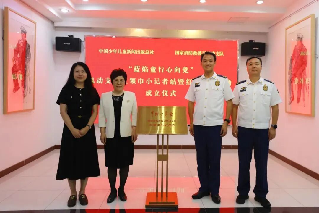 7月25日下午,中国少年儿童新闻出版总社联合国家消防救援局机动支队,在支队香山基地举行《中国少年报》“红领巾小记者站”成立仪式,并进行了“红领巾图书角”捐赠。中国少年儿童新闻出版总社党委常委、副总编辑、《中国少年报》主编蔺玉红,国家消防救援局机动支队谢东辉支队长、王瑜政委出席,首批从支队指战员子女中招募选拔的红领巾小记者代表及他们的父母和指战员代表共同见证这一重要时刻。