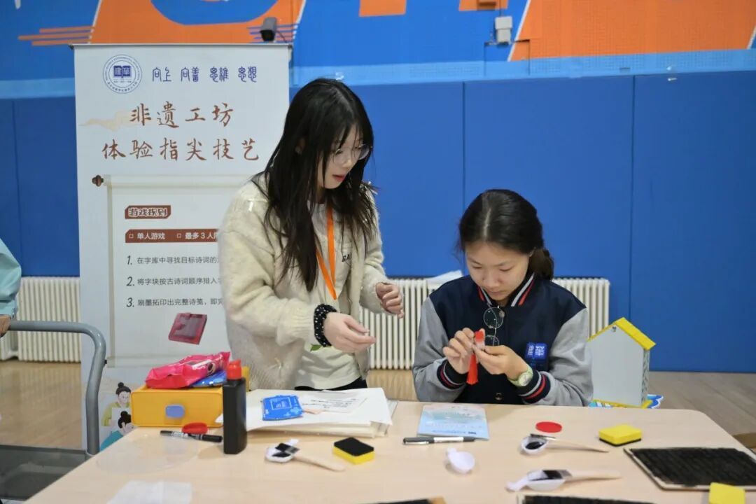 “愿一年后,我们既能到达各自的理想之地,又不会丢掉‘我们’。”即将中考的初三学子郑重写下成长目标,走进“时空穿梭屋”。“莫愁前路无知己,天下谁人不识君。”“非遗工坊”中,新鲜拓印出来的古老诗句与成长目标遥相呼应。