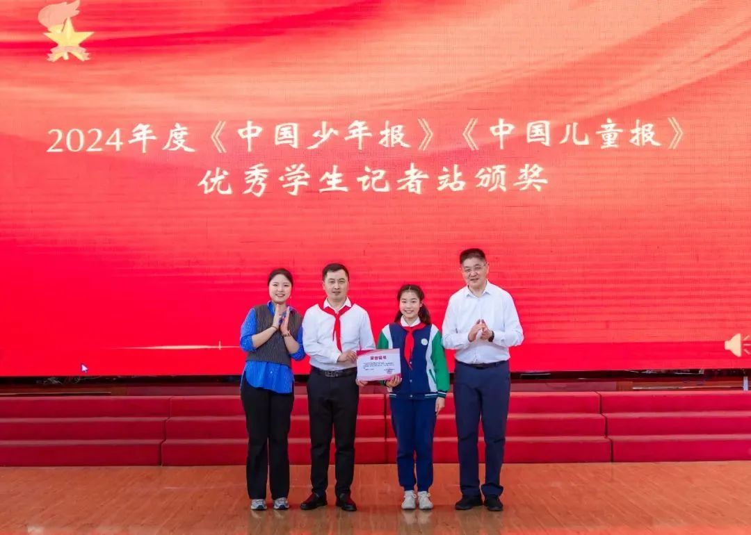 随后,中国少先队工作学会原副会长华耀国和中国少年报编辑记者苏畅为2024年度《中国少年报》《中国儿童报》优秀小记者站代表颁发荣誉证书。