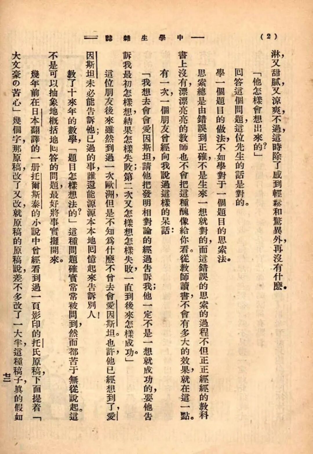 时光倒回到20世纪30年代,当杨振宁先生还是一名青涩的中学生时,《中学生》杂志在不经意间,点燃了他内心深处对数学的热爱。